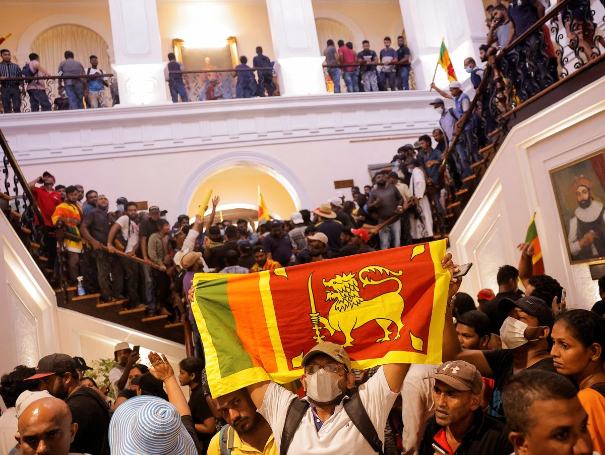 Inside the president's whitewashed colonial-era residence, a Facebook livestream showed hundreds of protesters, some draped in the national flag, packing into rooms and corridors.