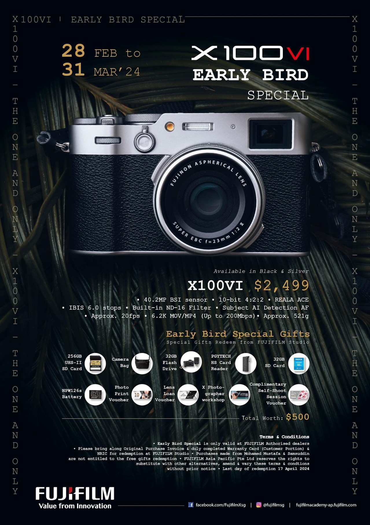 The X100 VI will be priced at $2,499 and pre-orders start from Feb 28 to March 31, 2024 at authorised Fujifilm dealers. For Malaysia, it will be priced at RM8,888 and the preorder starts from Feb 20 to March 3, 2024.