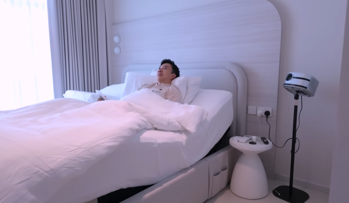 He explained: "Last time in my old bed, when I watched videos before I sleep, it was very tiring. But now, I have this TV function where the bed automatically comes up and it's very comfortable."