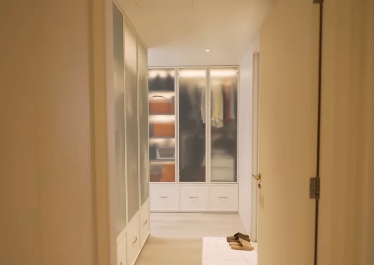 A walk-in wardrobe lines the hallway to the master bedroom, and despite the large storage capacity, Yvonne said it isn’t enough for her and Alex.