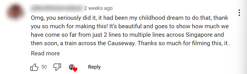 There was also a netizen who shared that it has been his "childhood dream" to cover all the MRT stations in Singapore.