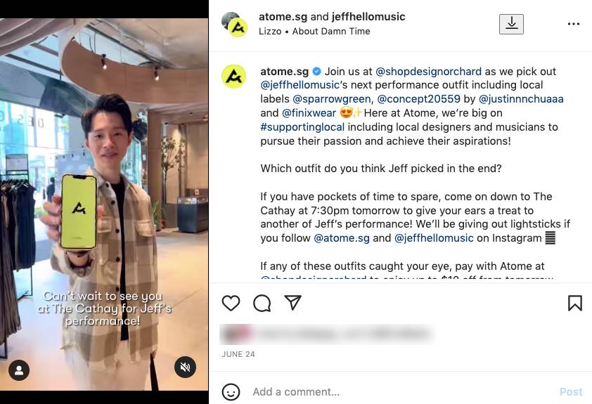 Captions by Atome Singapore on the since-deleted posts also seemed to signal a collaboration between the two as it rode on Jeff's popularity.