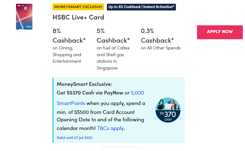 Get 8per cent cashback on dining with the HSBC Live+ Card. Plus, you’ll get complimentary access to 1-for-1 dining deals via the ENTERTAINER with HSBC app.