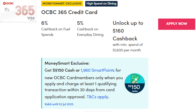 Earn 5 per cent cashback on everyday dining with the OCBC 365 Credit Card.