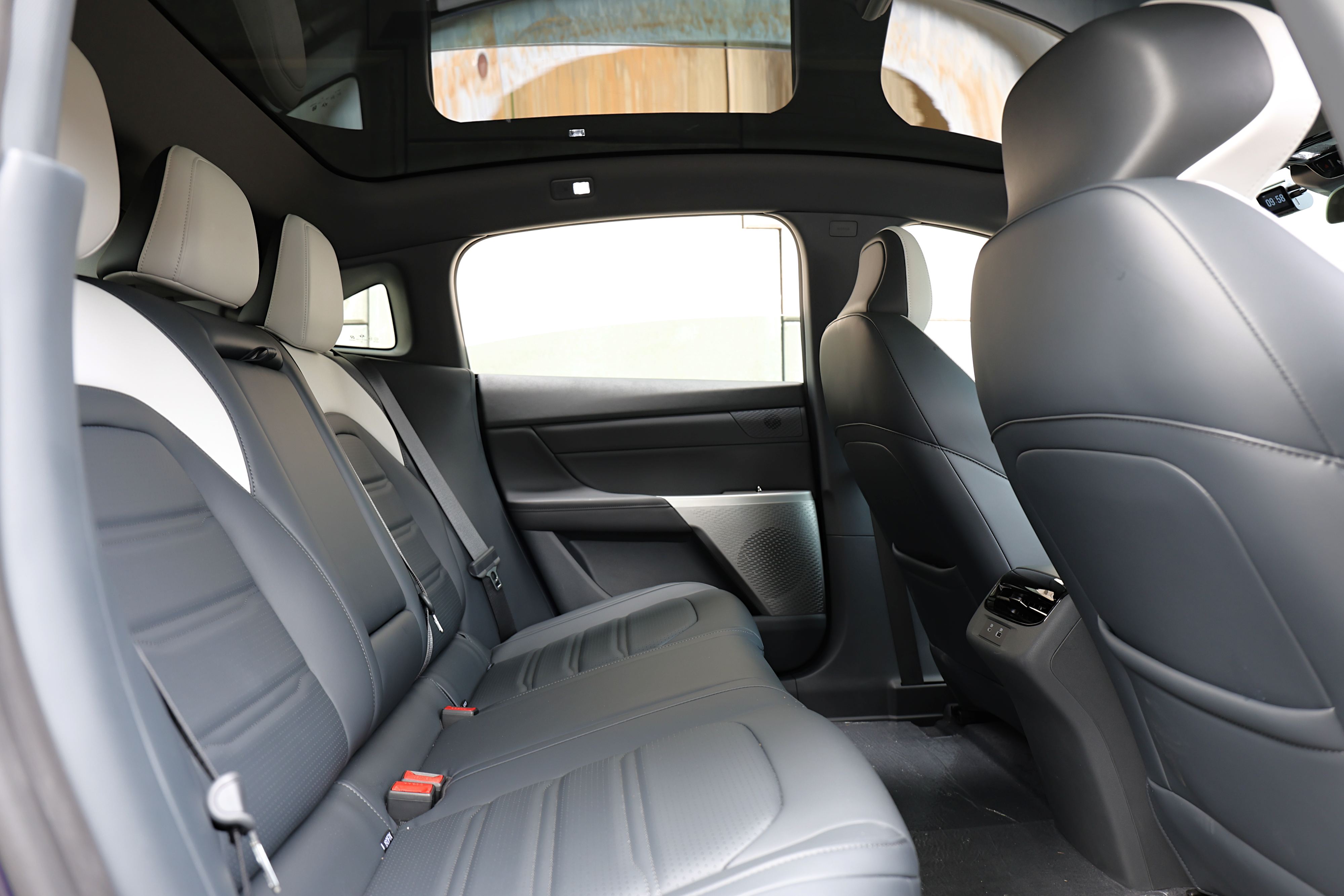 The standard martini version reviewed here is a single-motor 200kW rear-drive EV on 18-inch wheels. The stronger moutai version has dual motors with double the power (400kW) and torque (620Nm), propelling all-wheel-drive 19-inch rims.