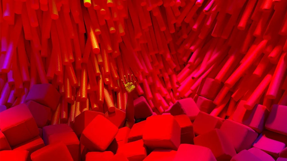 Kai: This one was pretty fun, pretty straightforward. Neon balloons everywhere, floating and bouncing in all directions, creating that chaotic, childlike joy that immersive experiences love to tap into.