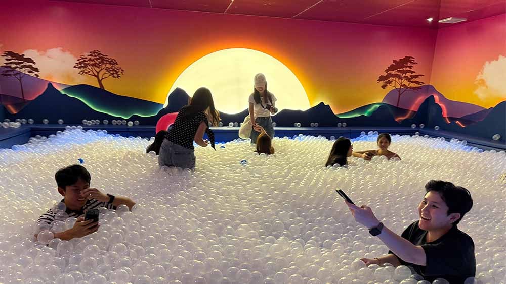 It's a giant ball pit set against a dreamy sunset backdrop, and visually, it does look very pretty. But once you remember that this is a shared space with lots of people, the illusion breaks a little. I found myself more cautious than carefree, which kind of defeats the purpose of frolicking in a ball pit like you're five again.