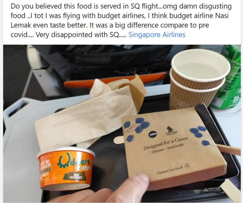 Facebook user Anderson Soh had expressed his disappointment over the meal he was served on an SIA flight from Singapore to Bangkok on April 30 and shared photos.