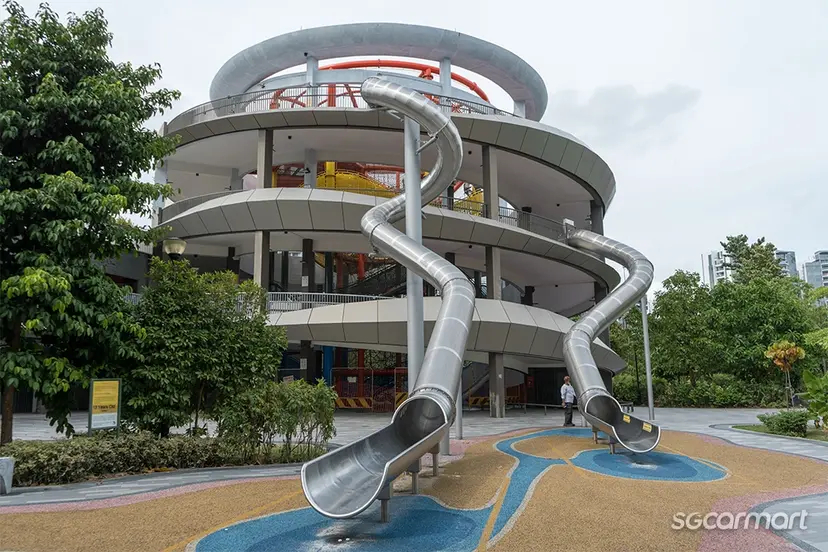 Located at Area B and four storeys tall, it houses Singapore's tallest outdoor play feature (Play tower) as well as its tallest outdoor slide, drawing comparisons with the iconic Big Splash waterpark's slides.