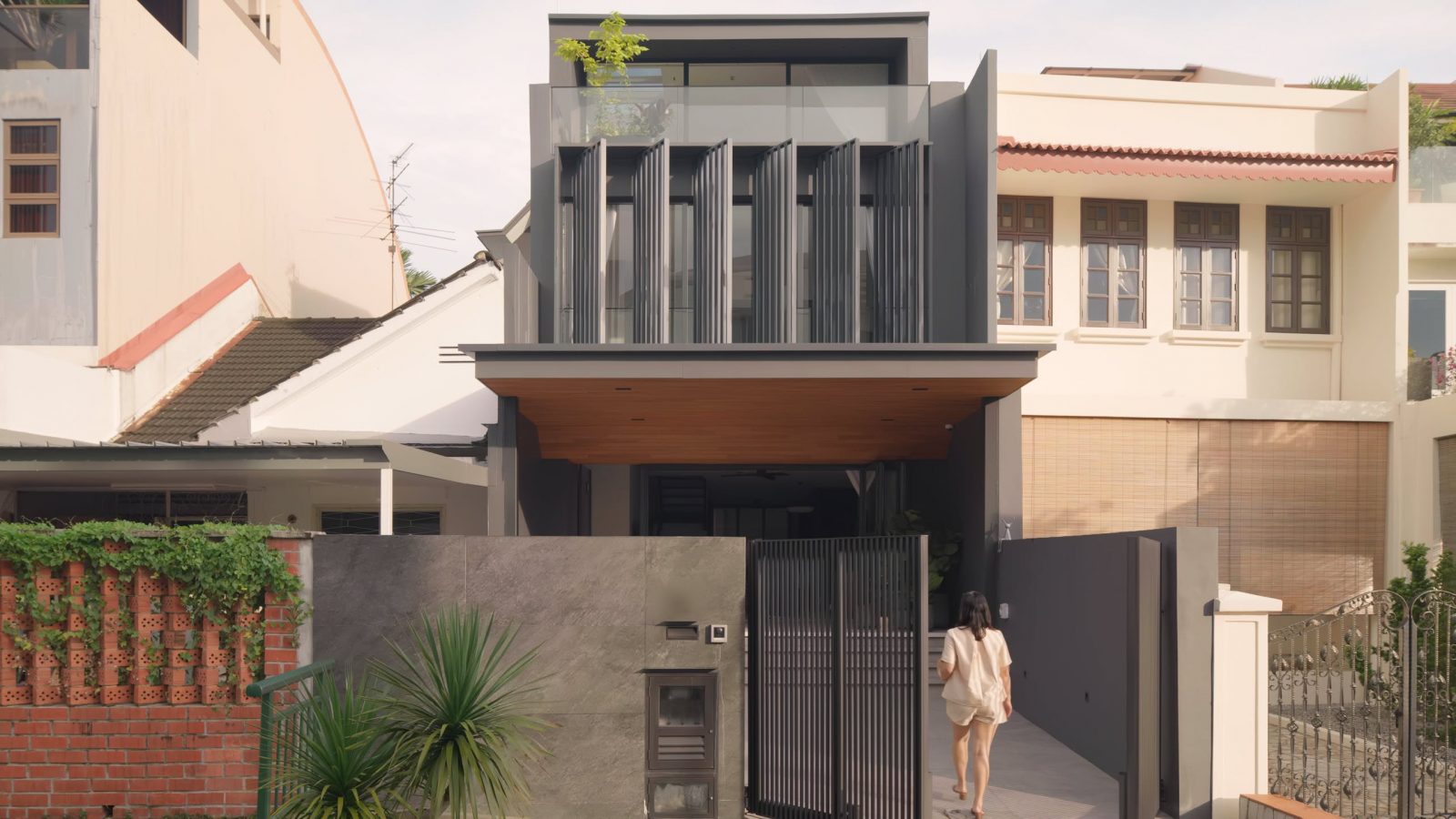 Set in a peaceful neighbourhood, the home features an open-plan layout, natural light, and seamless indoor-outdoor transitions. Large glass façades, bifold sliding doors, and open walkways contribute to the home's airy, light-filled atmosphere.
