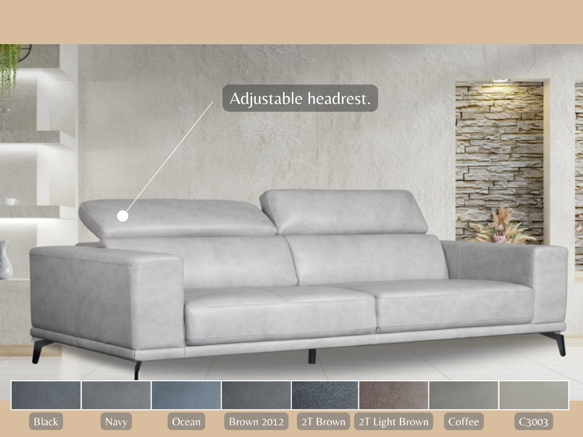 This full leather sofa not only presents a generous amount of space but is also perfect for accommodating energetic kids and provides adjustable headrests for ultimate relaxation.