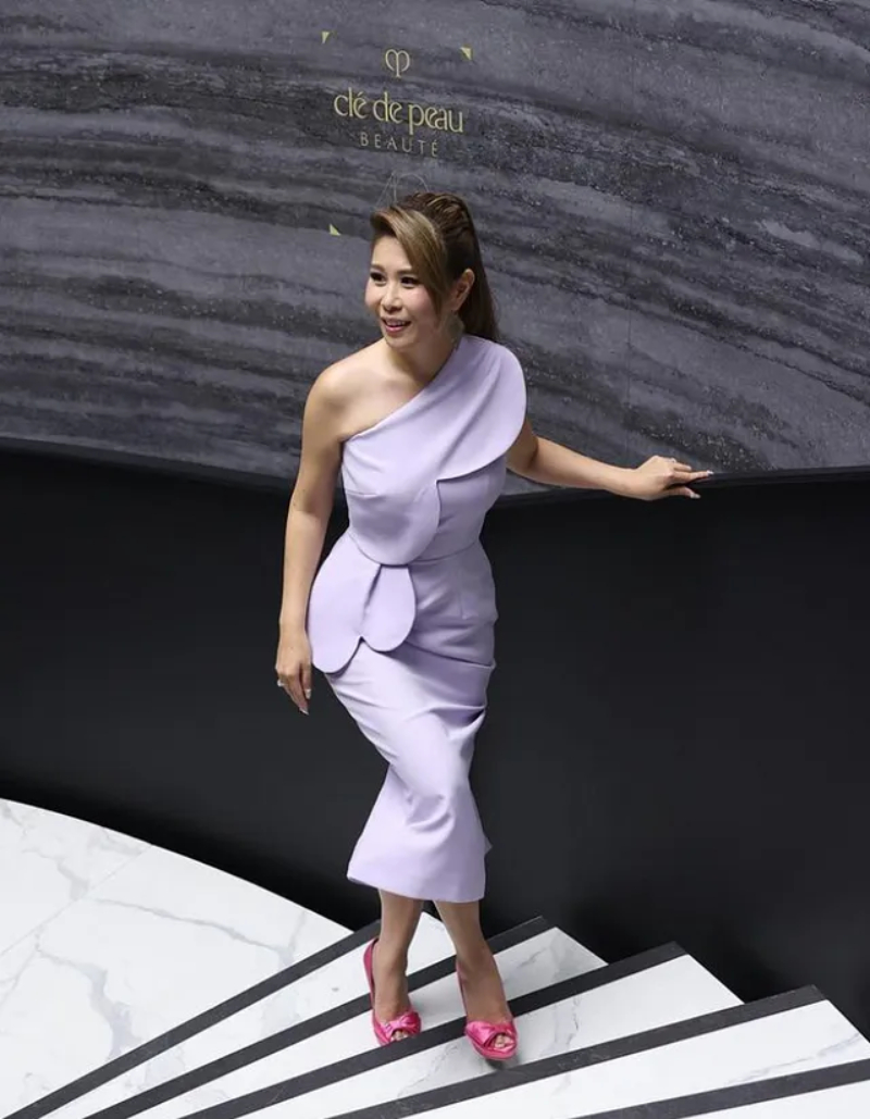So ditch the sparkly minis, and follow Yasminne Cheng's look by Peggy Hartanto from local multi-label brand SocietyA, and opt for a midi-length dress. Finish with classic jewellery and kitten heels.