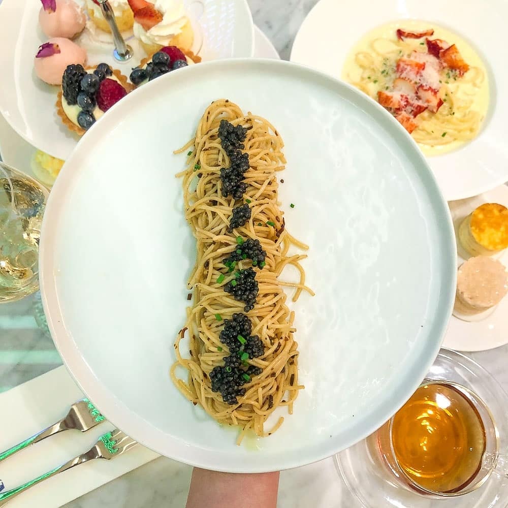 The Chilled Caviar Angel Hair ($40) is pricy but undeniably tasty, tossed in a zippy shio kombu dressing and sprinkled with black gold.