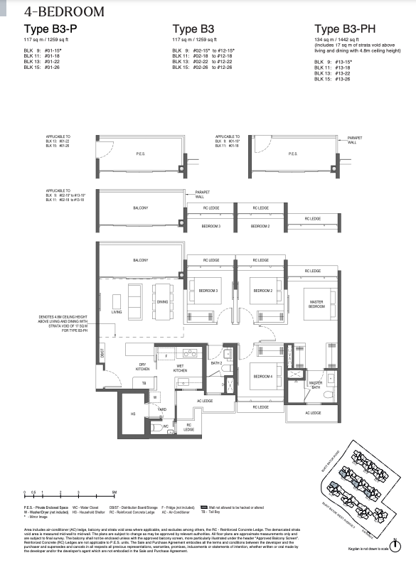 | 4 Bedroom | B1, B1-P, B1-PH, B2, B2-P, B2-PH, B3, B3-P, B3-PH, B4, B4-P, B4-PH | 1,141 – 1,453 sq ft | 155 | 30per cent |