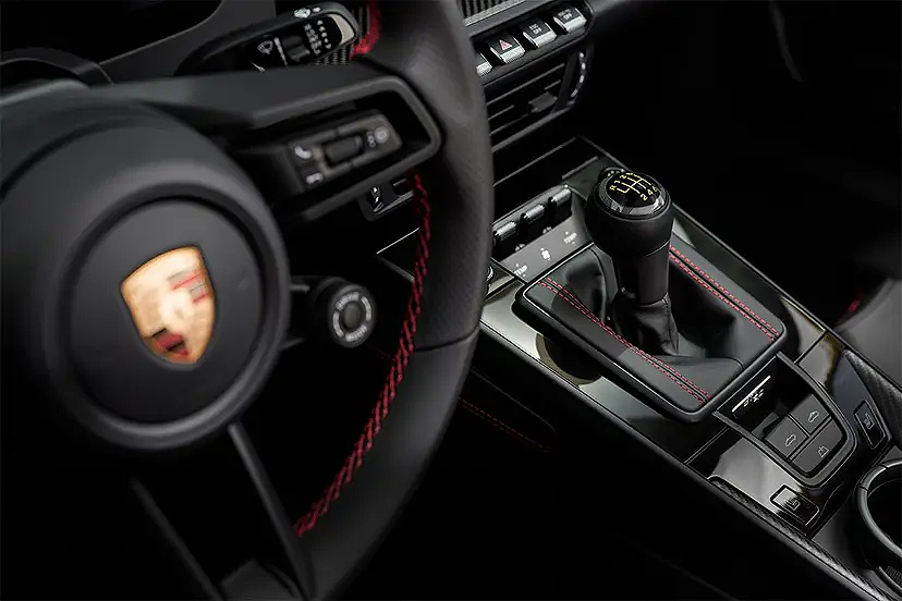 And like the 911 S/T, the 911 GT3 S/C's steering wheel is also upholstered in perforated leather, which comes with a rotary ignition switch on the left that starts the car (just like the current fixed-head 911 GT3).
