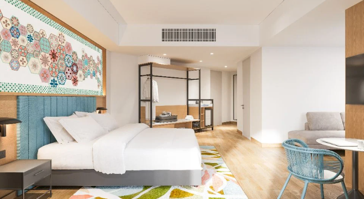 The rooms are contemporary, with cheery interiors and artistic touches, and the property has plenty of common spaces for guests to interact, like a Social Hub that serves up drinks and high tea.