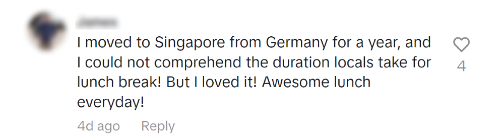 Another netizen who moved to Singapore from Germany shared that he was left flummoxed by how long locals take to have lunch.