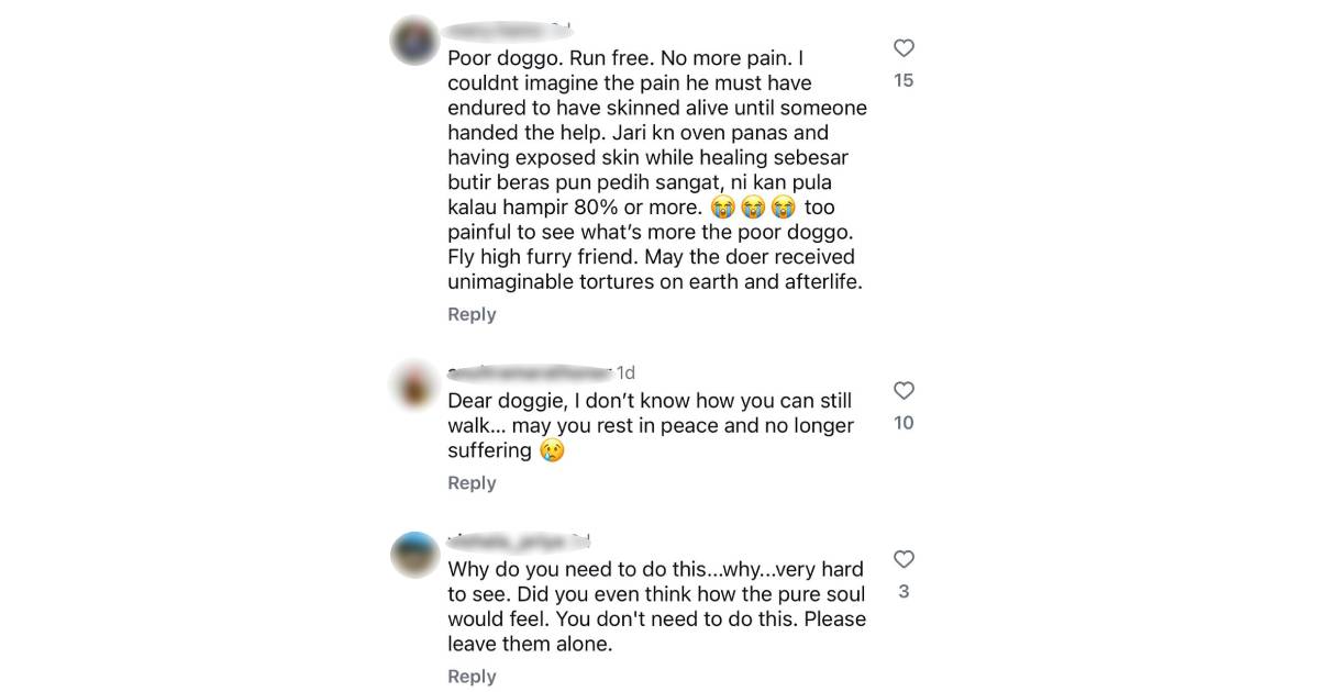 Pictures posted on the Malaysian Stray Animal Association (SAFM) Instagram page on Thursday (March 27), showed gruesome images of the animal's dorsal skin torn from its body.