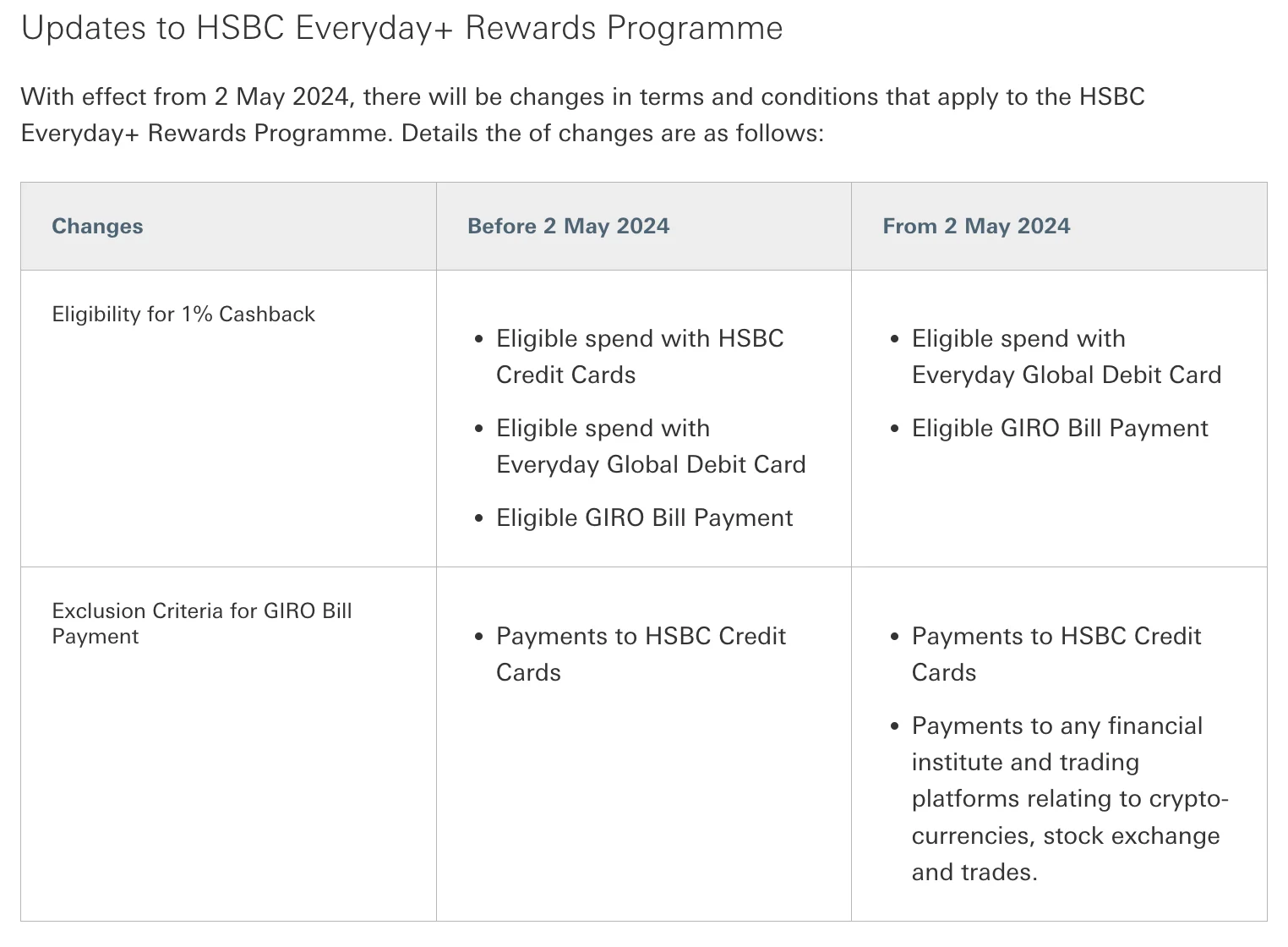 This change was implemented by HSBC on May 2 2024 and is also spelled out in their updated terms and conditions.