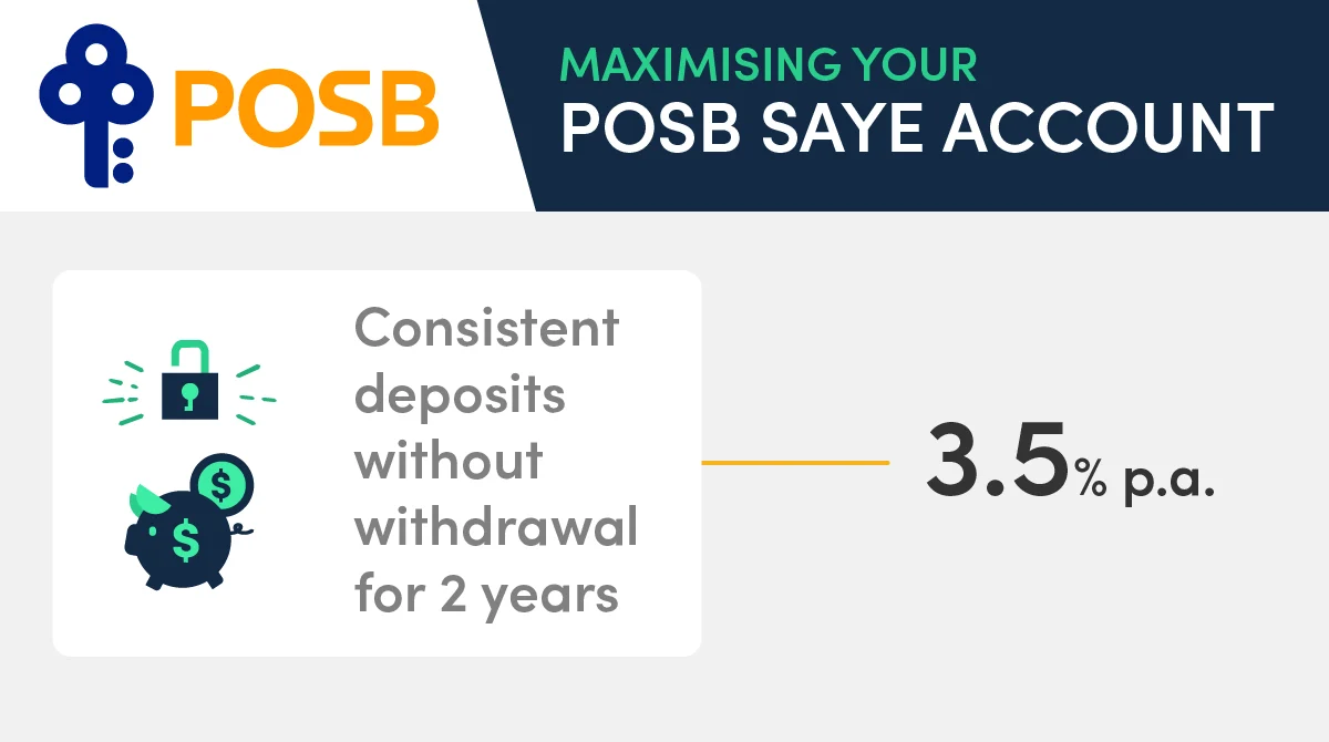 | POSB SAYE (Save As You Earn) | 3.50% (just deposit and maintain money, no criteria to fulfill!) | Students or first-jobbers |