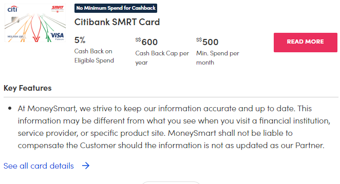 | Low or no minimum spend | Citi SMRT, Citi Cash Back+, Standard Chartered Simply Cash, Amex True Cashback, UOB Absolute Cashback |