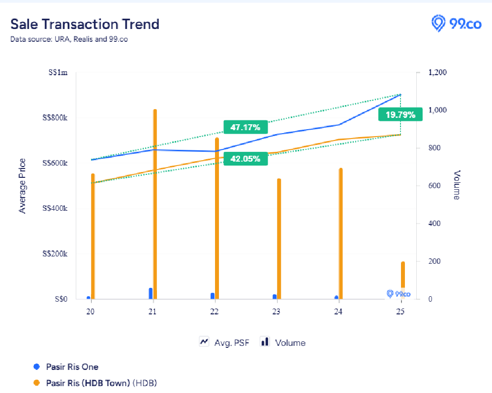 In context, the average resale price for HDB flats in Pasir Ris is currently about $703K, slightly above the national average. While Pasir Ris One posted nearly 20 per cent higher, it has also outpaced the town's average price growth by about 5 per cent. In essence, the DBSS project in Pasir Ris performs well both in the regional and the overall HDB resale market. It offers a compelling case for long-term value.