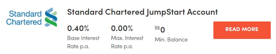The Standard Chartered JumpStart Account is open to young adults aged 18 to 26 only. If age is on your side, this account is a pretty good one as it gives you 0.4per cent p.a. on your account balance without needing any effort on your part.