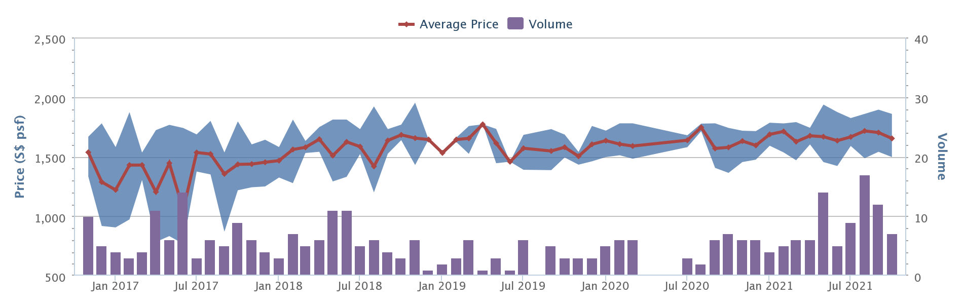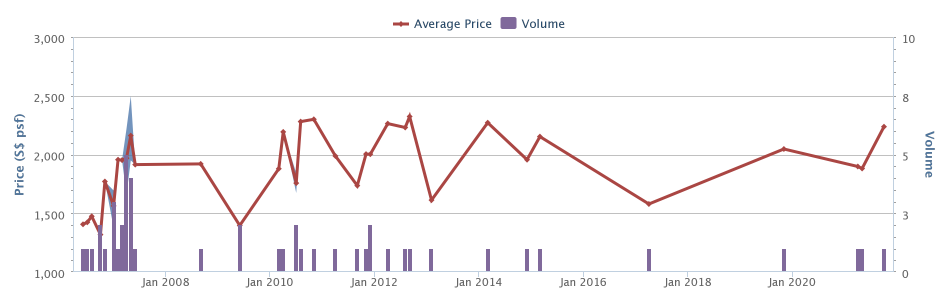 This gives you a more reliable picture of the price movement (currently at $1,421 to $1,937 psf, averaging $1,682 psf), over the years.