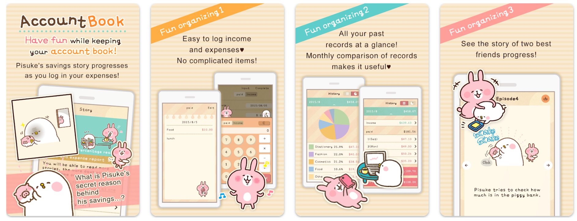 If you're a fan of cutesy stuff, Household Account Book wins for its adorable cartoon illustrations featuring its mascot Pisuke. The app is pretty simple to use; enter your income and expenses to see how much money you have at month's end. You can also see a breakdown of your expenses in pie chart form.