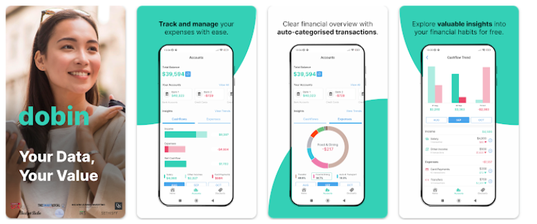 Singapore-based Dobin aims to help you save, spend and track your expenses better through AI and data analytics to ensure you have a clear view of your finances. The free app links your accounts and cards, automatically tracks your spending, and sees your monthly expenditure so you can spend smarter and adjust your goals accordingly.