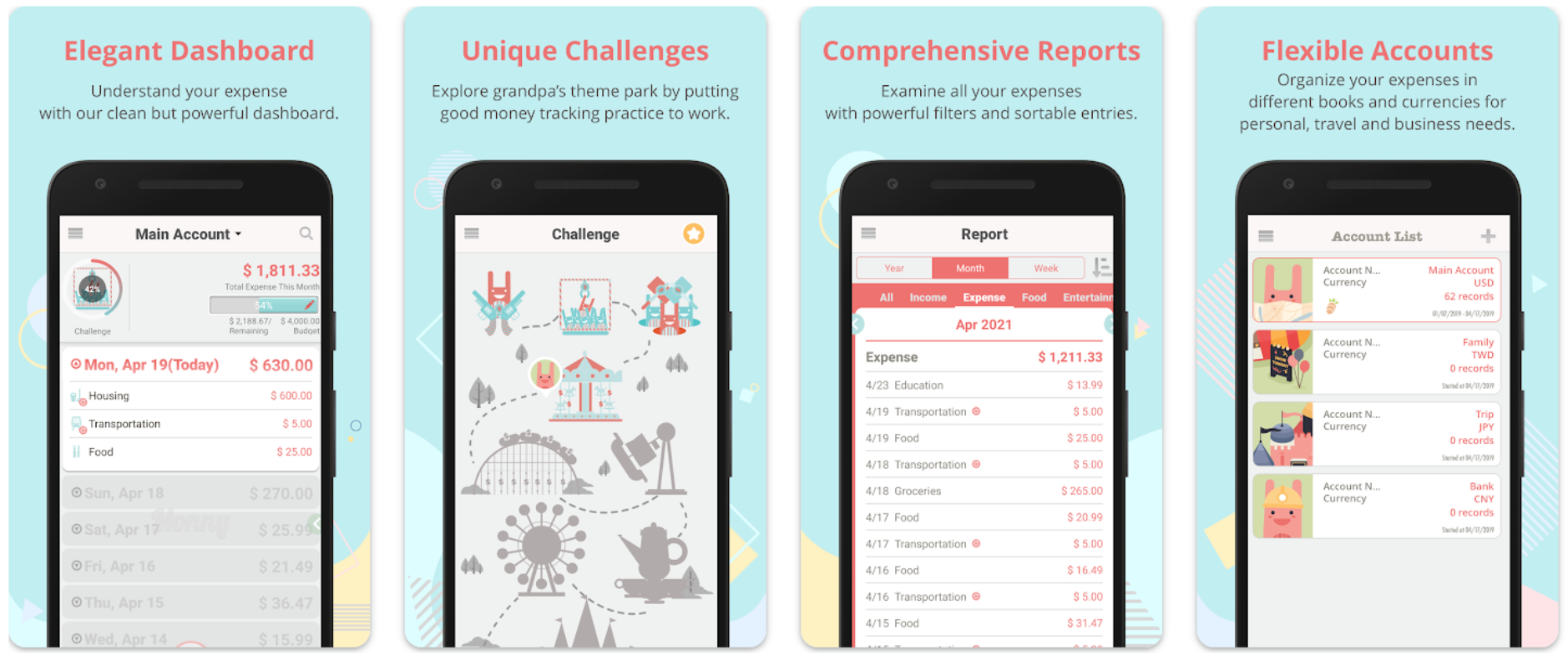 | Household Account Book | Budgeting newbies who love cute cartoons | No, manual entry required | Free |