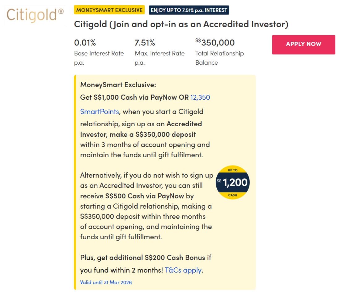 Note: The rates above are accurate as of March 3, 2026. Do check Citibank's fixed deposit promotion page for the latest rates in case Citibank makes changes.