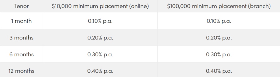 These are the best fixed deposit rates in Singapore 2026 for deposits $10,000 and under: