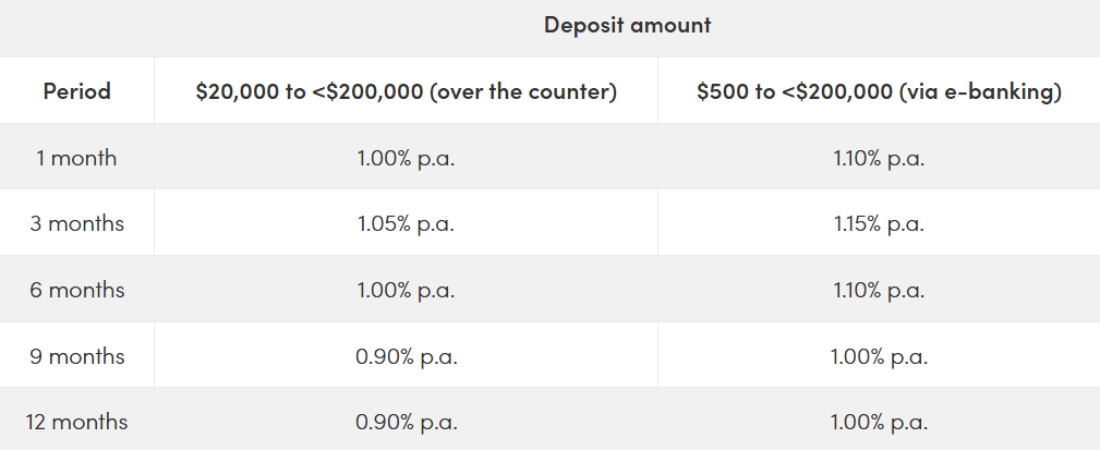 Note: The rates above are promotional rates subject to change at any time by OCBC. See OCBC's fixed deposit rates for the latest.