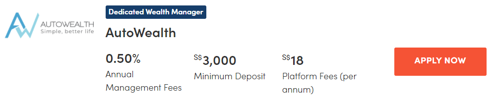 | AutoWealth | 0.5 per cent + US$18 (S$24) | $3,000 |