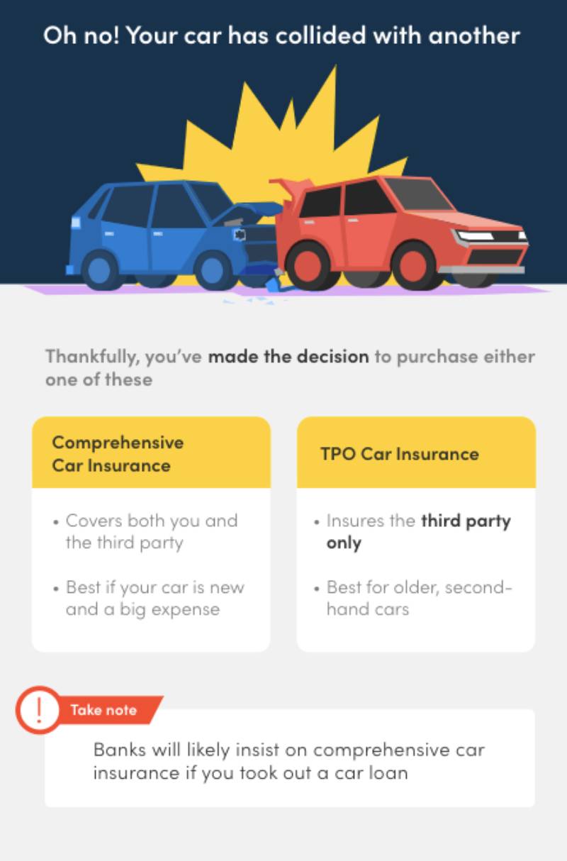 TPO car insurance is the minimum requirement in Singapore. It's cheaper and only covers damages to other people's cars. If you bump into someone's fender and he responds as though you had taken liberties with his wife, you can claim for the damage to his car to shut that loser up. But you can't claim any damage to your own car.