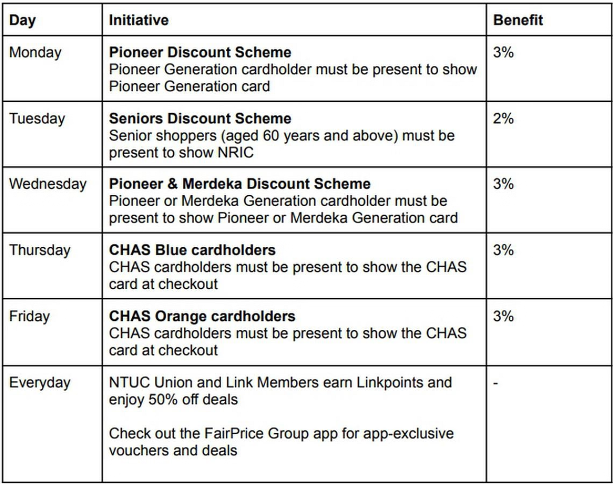 The deal applies to all FairPrice, FairPrice Finest, FairPrice Xtra and Unity stores, except for the Unity stores in Changi Airport.