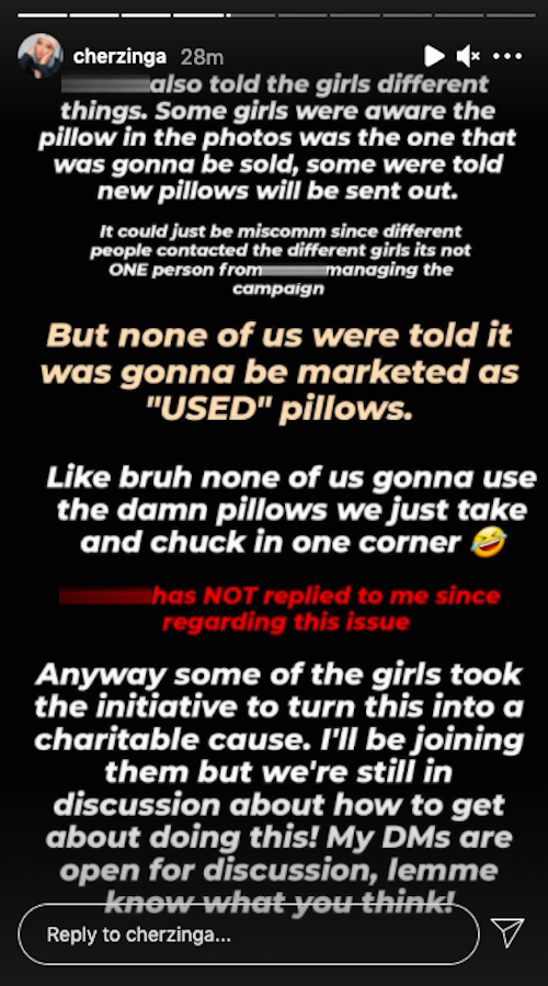 "I was told that they were going to be selling new pillows," Allison told AsiaOne. "We were also not told that [the company] would be making a post on their website saying 'Omg influencers selling used pillows'."