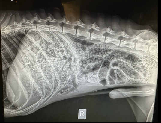 The canine was only able to pass about a quarter of the beads it had swallowed, which had not yet been hydrated.