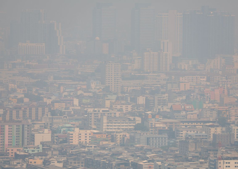 A view of the city amid air pollution in Bangkok, Thailand on Feb 2, 2023.