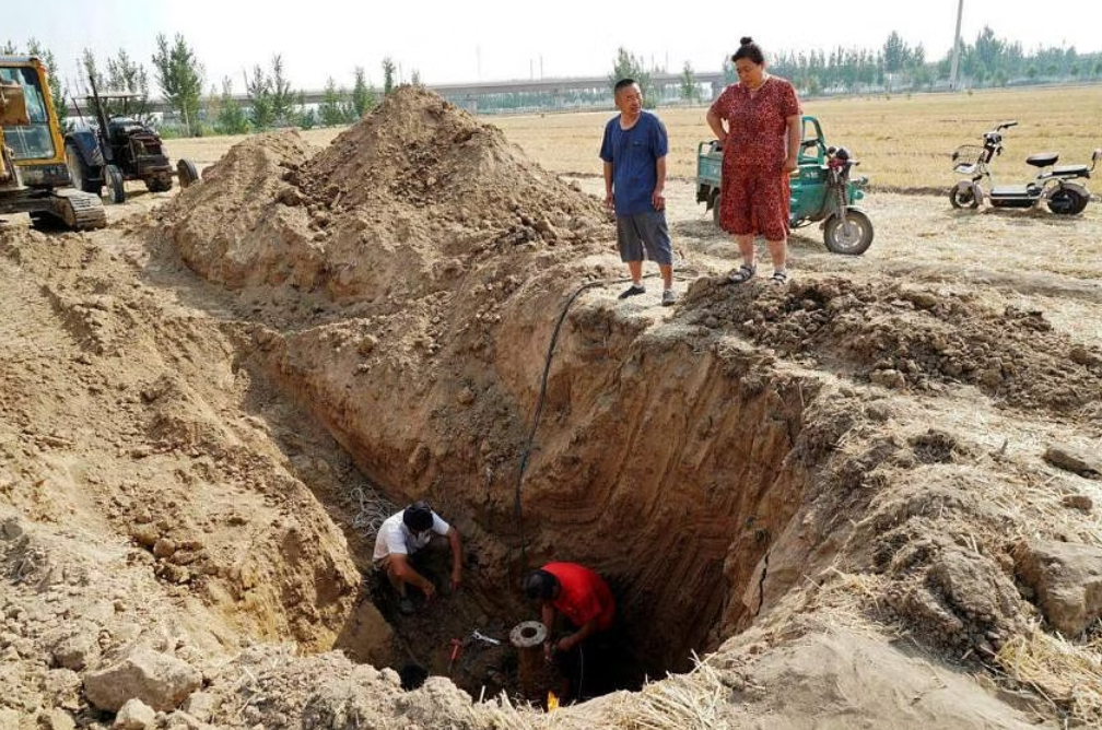 Near Zhang's farm, where many small plot holders still rely on manual watering, a group of sweat-drenched farmers braved the heat to repair a well that had been unused for over 30 years. They attempted to add a high-pressure water pump to draw water from underground.