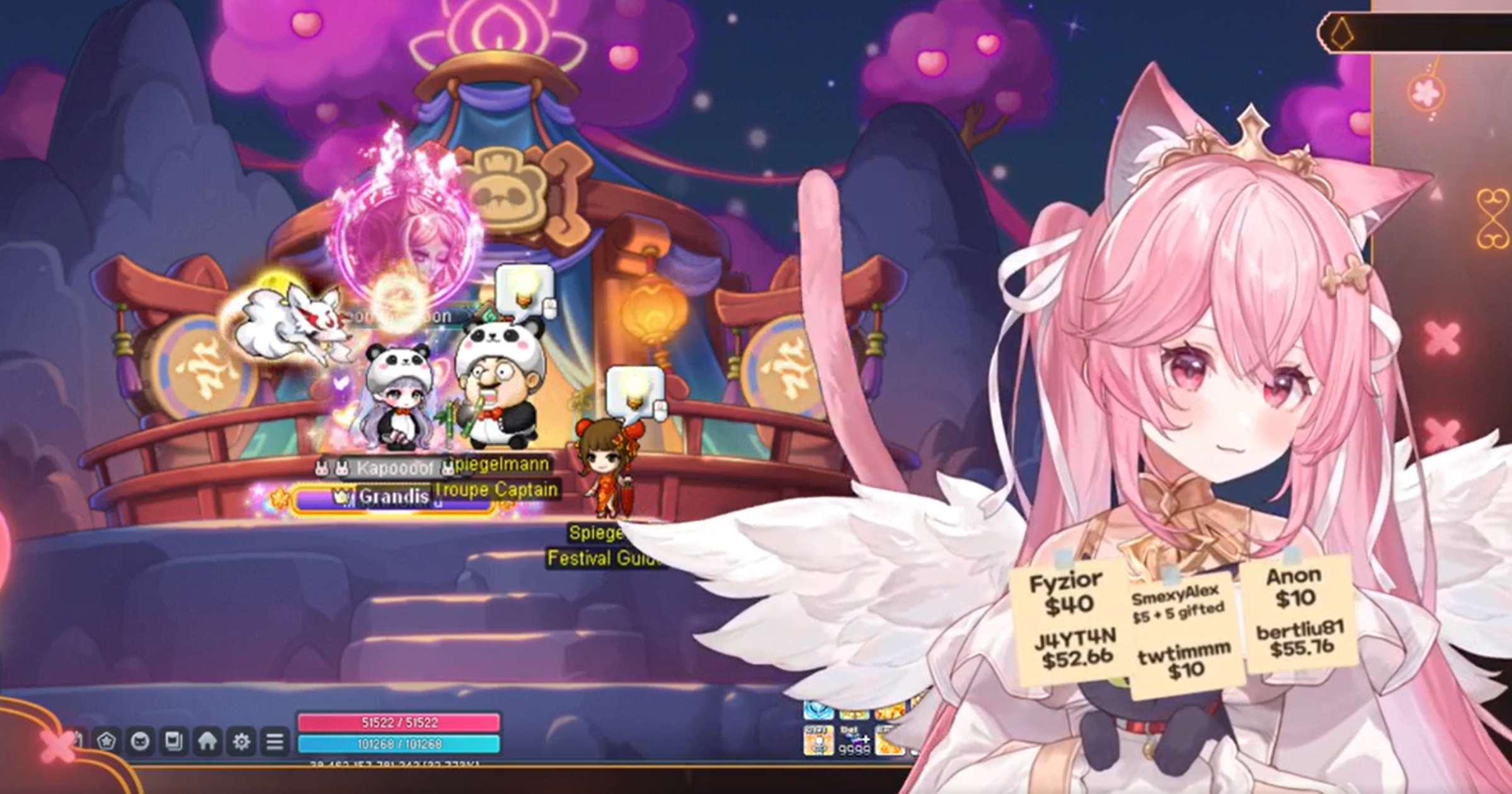 Another VTuber, Kapoooof, streams as a cat girl with angel-like wings, wearing a white dress.