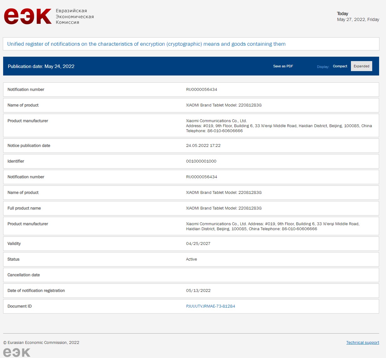 An unknown Xiaomi tablet recently received certification approval over at Eurasian Economic Union’s certification website. This was spotted by XiaomiUI, a Xiaomi fan community website.