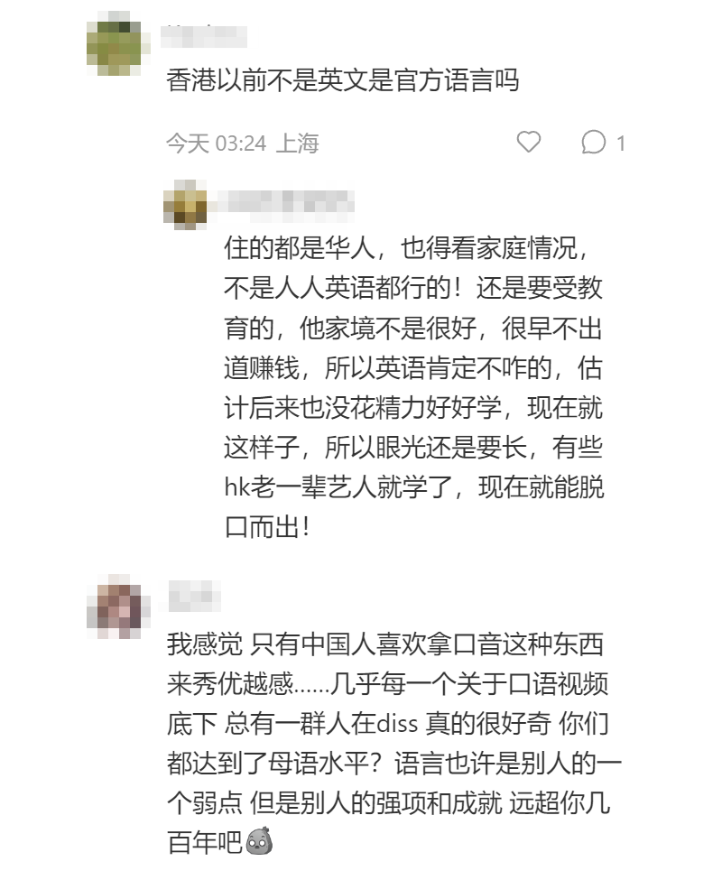 "I thought Hong Kong artistes are supposed to be good at English," a comment on Xiaohongshu read.