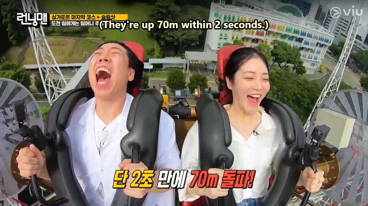 In the latest episode aired yesterday (Nov 26), members Yoo Jae-suk, Song Ji-hyo, Haha, Kim Jong-kook, Ji Suk-jin and Yang Se-chan continued their tour in Singapore together with guests, actress Shin Ye-eun and former esports player Hong Jin-ho. Unlike the previous episode, where they tried ordering local food in Singlish, the players were split into four teams of two this time.
