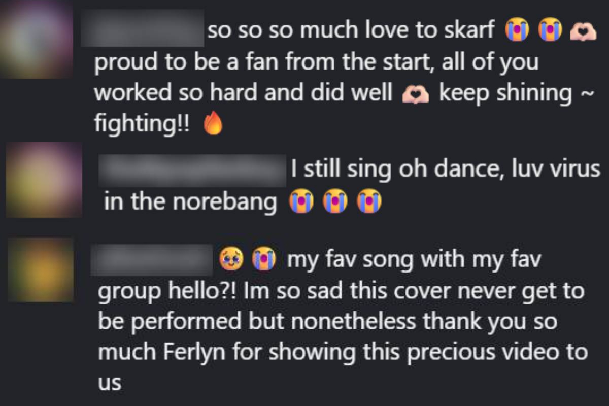 "My favourite song with my favourite group?! I'm so sad this cover never got to be performed, but nonetheless, thank you so much Ferlyn for showing us this precious video!" wrote a fan.