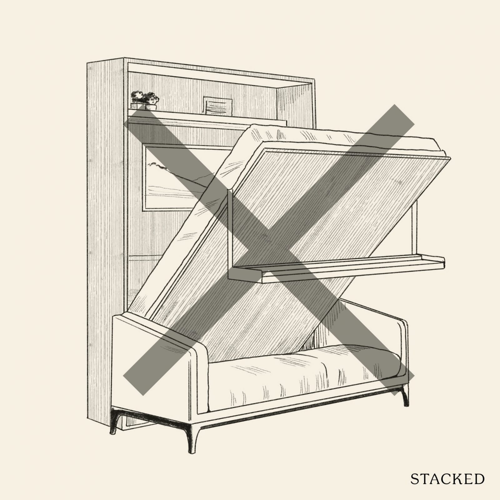 We understand the temptation of certain space-saving devices and features, like fold-out beds and such; but these items are at higher risk. Children aren't always gentle or systematic in the way they pull and tug at them. There's also a greater risk of injury, via trapped fingers, or someone trying to fold up the bed while their little brother is in it.