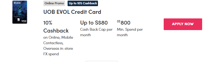 With a minimum spend of $600 a month, you can use the UOB EVOL Credit Card for eight per cent cashback on mobile contactless payments (just be sure to make payment by mobile contactless methods!), or the HSBC Visa Platinum Credit Card for five per cent cashback on your dining spend.