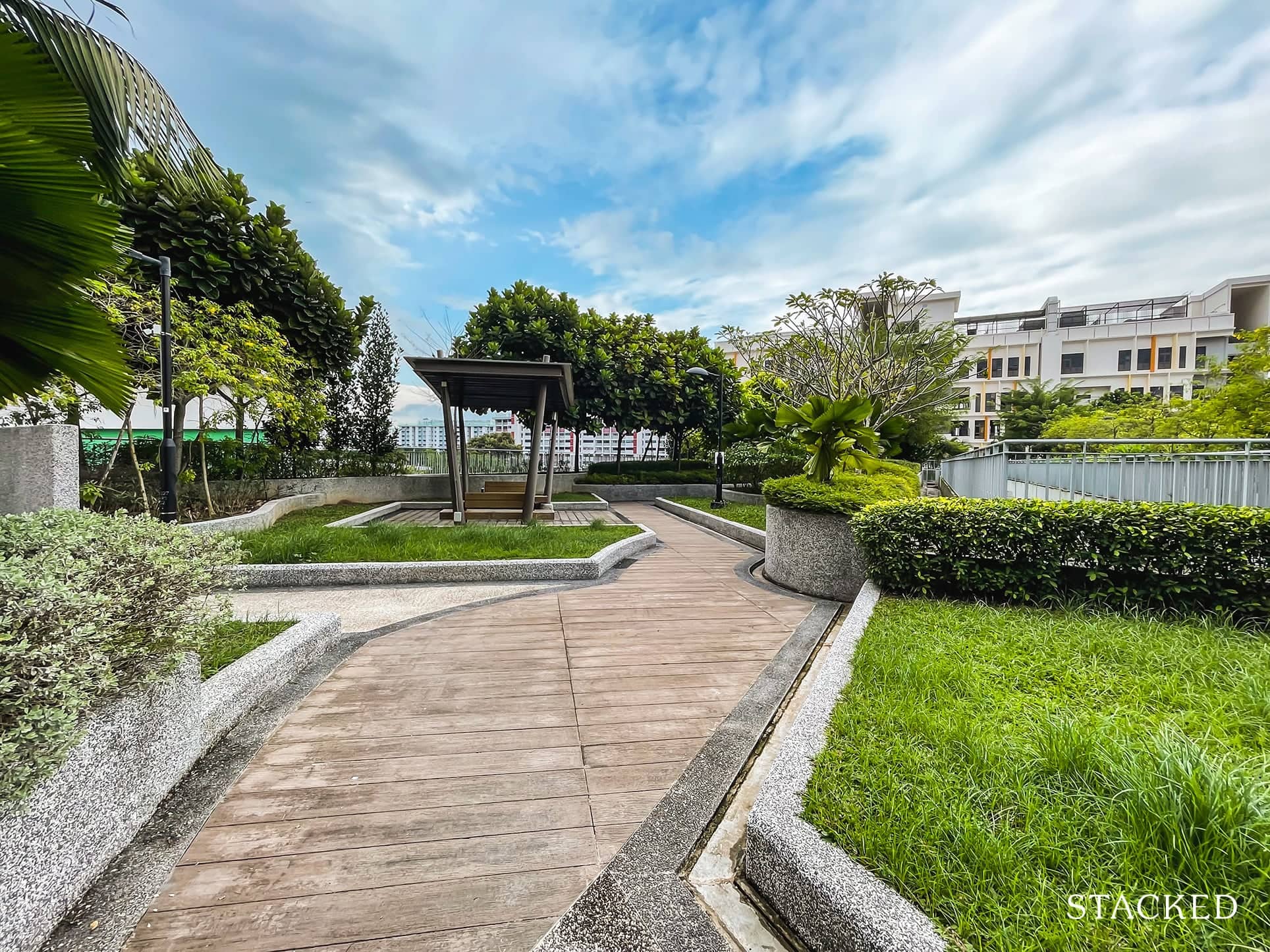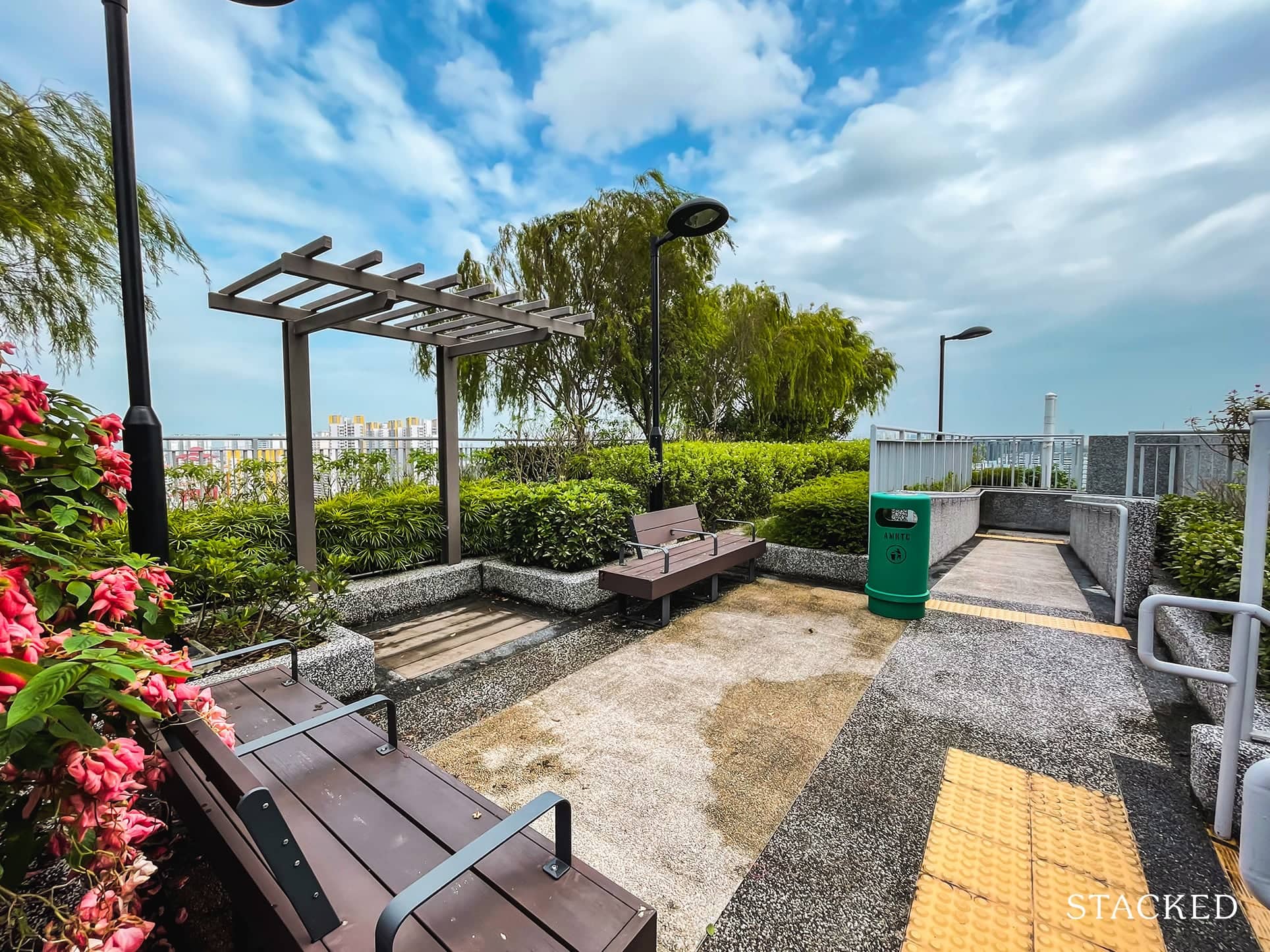 To make things more convenient, the rooftop garden was connected with the neighbouring block via a link bridge.