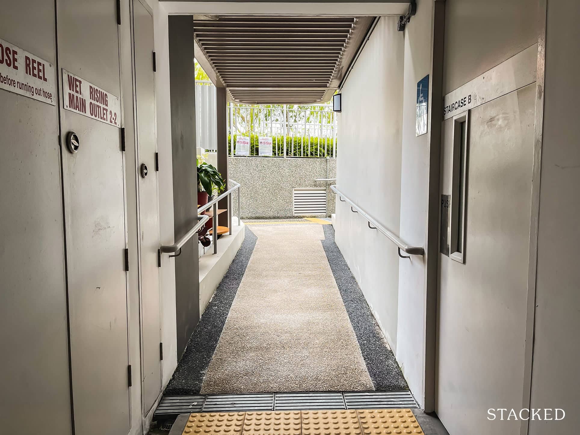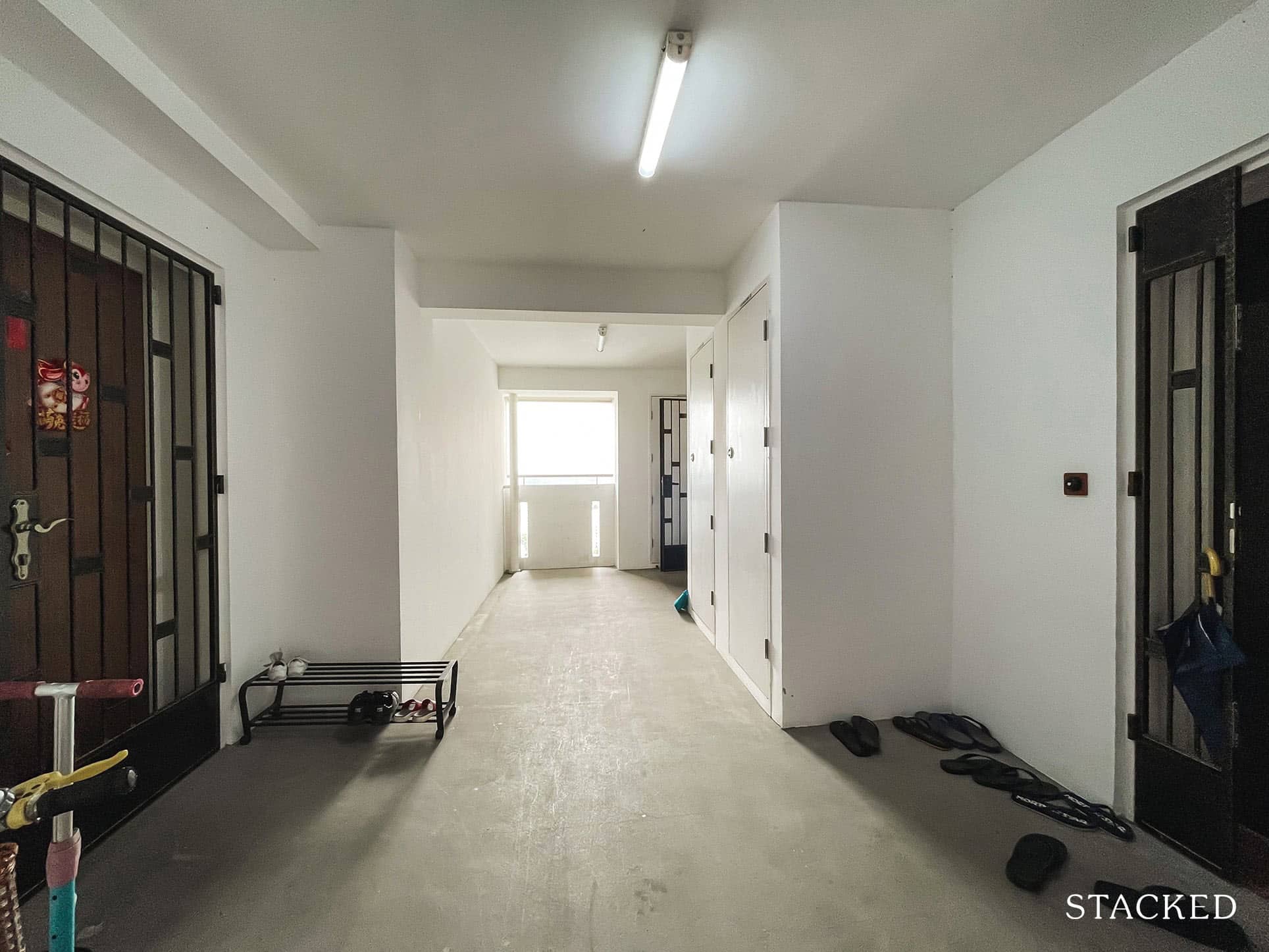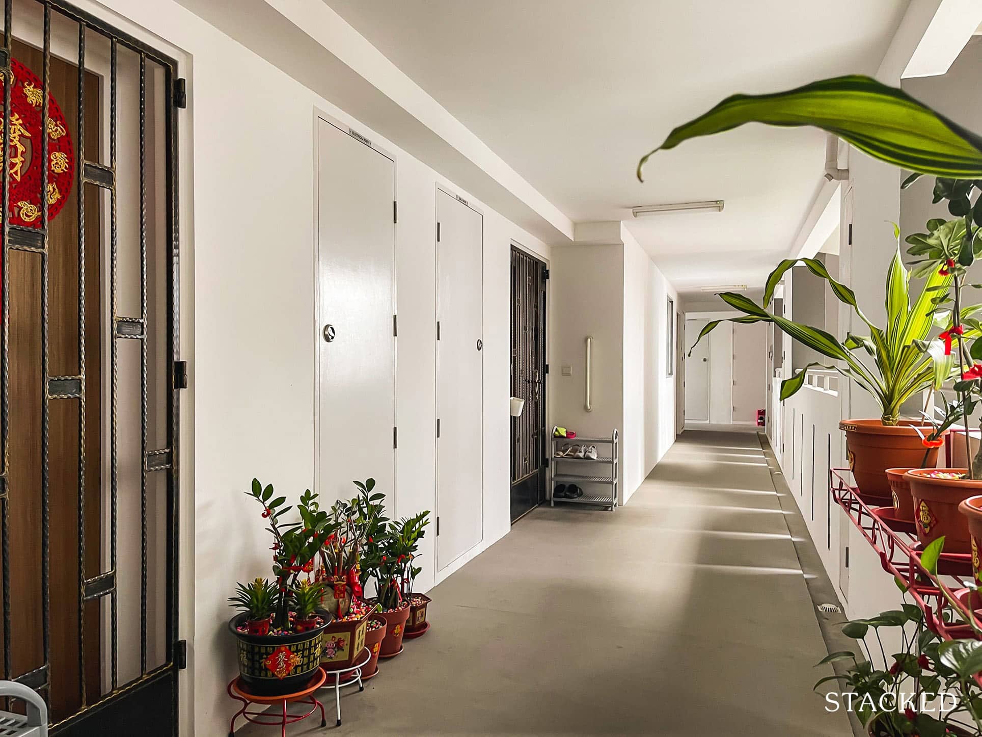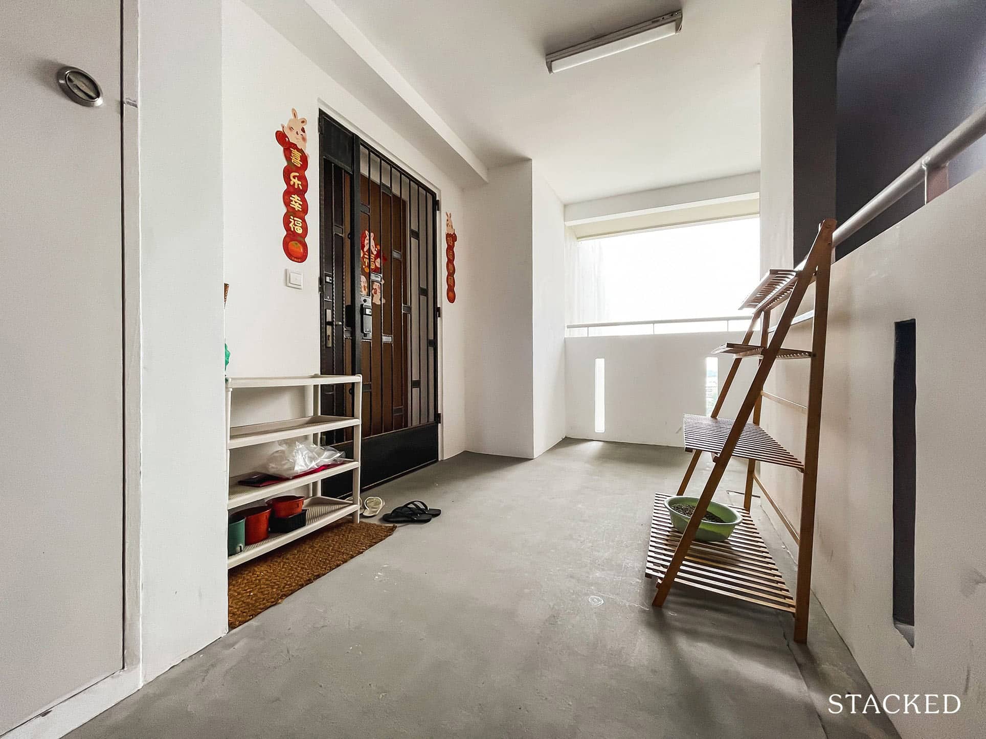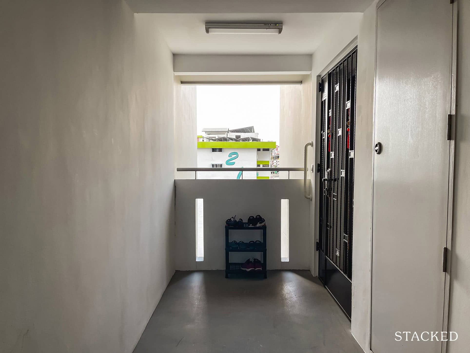 Each unit has a good amount of space outside, which really helps when you need to leave things like your shoes outside. Units along the corridor have a good distance between them, so there’s definitely no gate that would be clashing against each other while affording residents space to put useful things like a shoe rack.